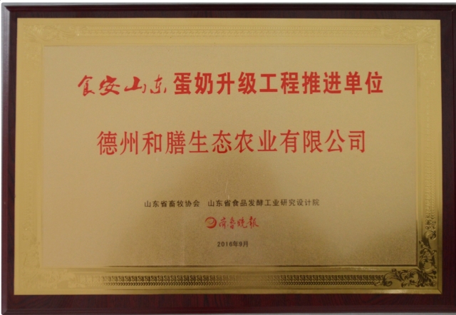 公司2010年被評為“國家級蛋雞養殖示范園區”、2011年成為山東省首家通過“清潔生產認證的企業”,同時獲得國家發改委2012年資源節約和環境保護中央預算財政補貼資金760萬元,被省發改委列入“2014年西部隆起帶重點扶持企業”。